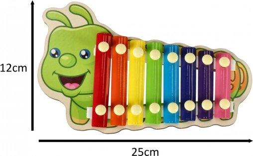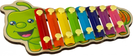A hernyó dizájn első pillantásra megragadja a figyelmet, és hosszú időre játékra csábít. A hangszer támogatja a koncentrációt, a türelmet és a kreativitást, miközben segít a gyerekeknek megismerni a színeket és egyszerű dallamokat összeállítani.