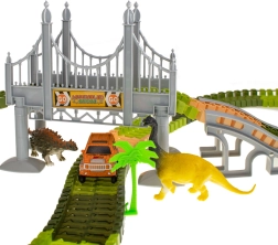 A készlet tartalma: 160 pályaelem, autó, 2 dinoszaurusz, 4 pálmafa, híd és kapu. Az autó 1 db AA 1,5V elemmel működik, mely nem tartozék. Minden pályaelem könnyen összeszerelhető, és nagyon rugalmas a különböző formákhoz és variációkhoz.