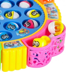 Kapcsold be a forgó tavacskát, készítsd elő a botokat, és kezdődhet a horgászat! A halacskák forgás közben felváltva nyitják és csukják a szájukat, ezért pontos időzítésre és ügyességre van szükség. A játék ideális 1–4 játékos számára, és a vidám zene valamint az élénk színek miatt a gyerekek azonnal megszeretik.