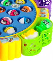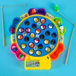 A motoros alap egyenletesen forog, a játékot vidám zene kíséri – ideális izgalmas horgászathoz és a gyors reagálás gyakorlásához.