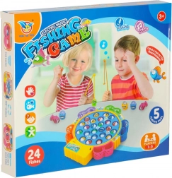 Szórakoztató családi játék 1–5 játékos számára, amelyben forgó tavacskában kell halacskákat kifogni. A motor hajtja a forgó platformot, a halak nyitogatják-csukogatják a szájukat, és a játék dallamot játszik. A csomag tartalma: 24 halacska, 5 horgászbot és színes alap kosárkákkal. Kiválóan fejleszti a reflexeket, a kéz–szem koordinációt és a koncentrációt.