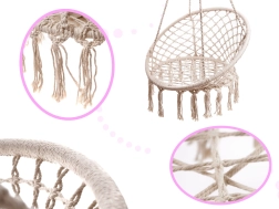Erős kötelek speciális fonással és fém vázzal biztosítják a pihenés biztonságát. Biztos lehetsz benne, hogy a hinta sokáig szolgál majd.