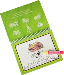 A vizes kifestő varázsfilccel remek módja annak, hogy a gyerekeknek kreatív szórakozást nyújtsunk foltok és ceruzák vagy festékek nélkül. A lapok vizes filccel való áthúzása után azonnal megjelennek az élénk színek és a játékos tanyasi illusztrációk – tehenek, lovak, tyúkok és még sok más.