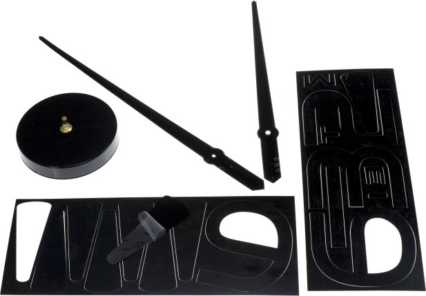 Az óra elemei könnyen felragaszthatók a falra öntapadós alkatrészekkel, így a méret és az elhelyezés szabadon testre szabható.