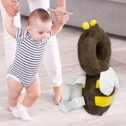 A bájos, méhecske formájú biztonsági párna védi a baba fejét és hátát az ülni és járni tanulás közben. A puha töltet tompítja az eséseket, a állítható pántok biztosítják a helyes illeszkedést, a kellemes plüss anyag pedig kíméletes a gyermek bőréhez.