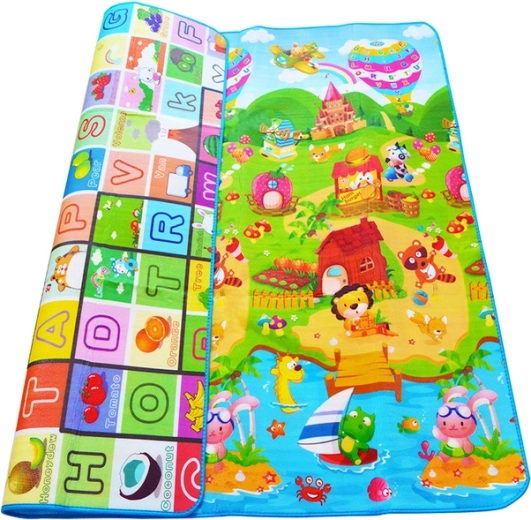 Ösztönözze a tanulást és a képzeletet. A szőnyeg egyik oldala segít a betűk felismerésében, a másik festői tájat és állatokat kínál a kreatív játékhoz.