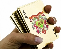 Ha strapabíró műanyag kártyákat keres prémium megjelenéssel, ez az arany szett kiváló választás a mindennapi játékhoz és különleges alkalmakra is.