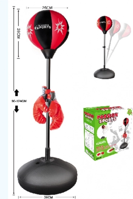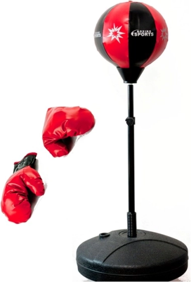 A gyerek bokszkörte teleszkópos fém rúdon van rögzítve, amely rugóval kapcsolódik a stabil talphoz. Ennek köszönhetően ütés után finoman visszatér, az edzés biztonságos és szórakoztató. A körte felfújható, a teljes összeállítás maximális magassága 124 cm, az állítási tartomány 90–124 cm.