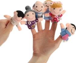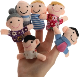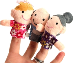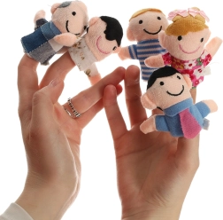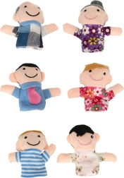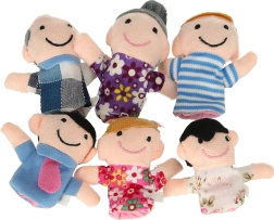 A készlet hat különböző színű figurát tartalmaz, amelyek a család tagjait ábrázolják: apa, anya, nagypapa, nagymama, lány és fiú. Az ujjbábok könnyen felhúzhatók az ujjakra, és úgy tervezték őket, hogy szórakoztatóak és egyszerűen használhatók legyenek a gyerekek számára is.