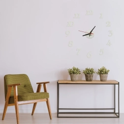 Ez az óra készlet önálló összeszerelésre kínál rugalmasságot a 70 cm-től 130 cm-ig terjedő méretekkel. Az órák kizárólag sima felületekre szerelhetők, és AA elemekkel működnek, amelyek nem tartoznak a csomagba. Sima járás biztosítja a pontos időmérést.