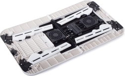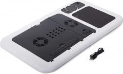 Az asztal két USB ventilátorral van felszerelve, amelyek hatékonyan hűtik a laptopját és megakadályozzák a túlmelegedést. Rendelkezik továbbá egértámasszal, csésze- és tolltartóval a még nagyobb praktikum érdekében.