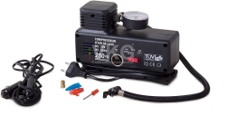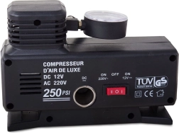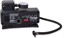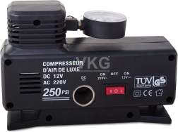 Praktikus autókompresszor, amely 12 V-os szivargyújtóról és 230 V-os hálózatról is működik. Könnyedén és gyorsan felfújhatja a autó- és kerékpárabroncsokat, valamint a labdákat és felfújható matracokat. Tartozék a manométer, kb. 50 cm-es légcső és 3 univerzális fúvóka sportfelszerelésekhez.