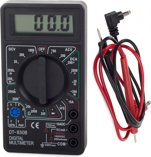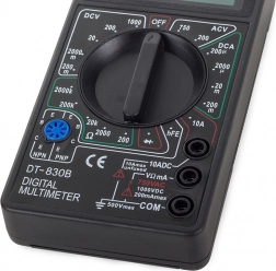 A bevált DT–830B konstrukción alapuló, kompakt és megbízható multiméterrel ellenőrizheti a DC/AC feszültséget, az egyenáramot és az ellenállást. Az áttekinthető LCD-kijelző megkönnyíti az értékek leolvasását, az automatikus kikapcsolás pedig kíméli az elemet, így a készülék mindig munkára kész.
