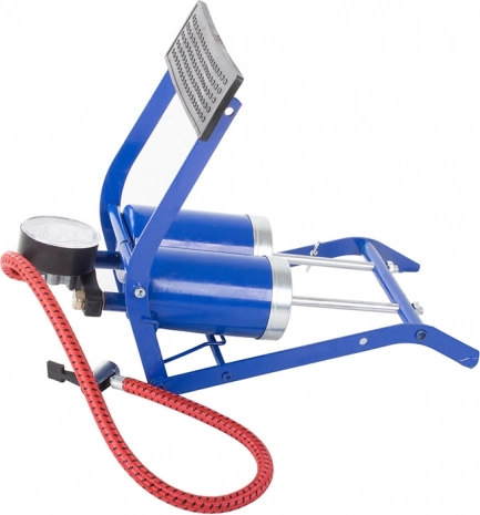 Az univerzális, dupla hengeres lábpumpa akár kétszer olyan gyors felfújást biztosít, mint a hagyományos egyhengeres modellek. A robusztus szerkezetnek, az áttekinthető manométernek és a gumírozott, formázott pedálnak köszönhetően a munka kényelmes, stabil és biztonságos. A 100 PSI / 7 bar maximális nyomás a legtöbb abroncs és sportkellék igényeit lefedi.