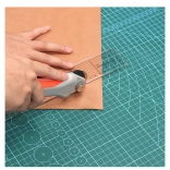 Jól olvasható, nyomtatott centiméteres rács, szögek és körívek segítik az anyag igazítását és a precíz vágásokat.