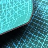 A kétoldalas nyomat jól olvasható mérőskálákat, egyeneseket, szögeket és segédköríveket kínál a gyors és pontos anyagigazításhoz. A csúszásgátló felület helyén tartja az anyagot, a 3 mm-es vastagság pedig hatékonyan megóvja az asztalt az átvágástól.