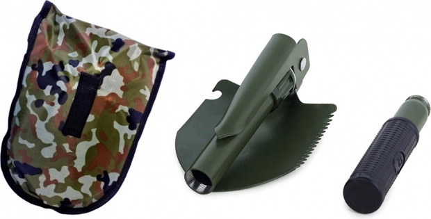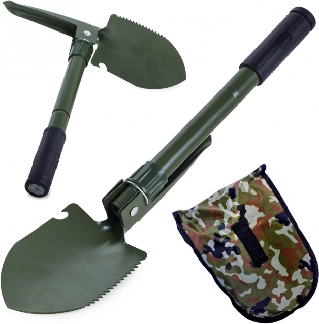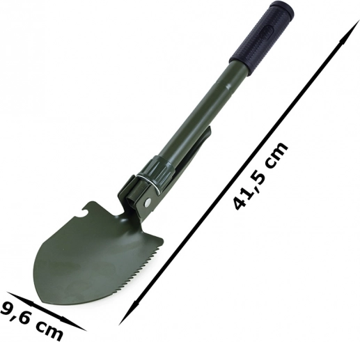 Ez az összecsukható multifunkciós lapát egyesíti a lapátot, csákányt, fűrészt és nyitót egy kompakt eszközben. Magas minőségű acélból készült, amely ellenáll a természetben és a mindennapi használat során felmerülő megterhelésnek. A csúszásmentes markolat biztos fogást és biztonságos munkát nyújt.