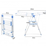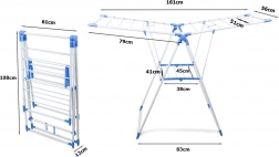 Tágas, kétszintes ruhaszárító, akár kb. 10–11 méter szárítófelülettel, erős, zománcozott rudakkal 1 cm átmérővel és állítható, összecsukható szárnyakkal. A gyors összecsukásnak és a kompakt, összecsukott méreteknek köszönhetően könnyen tárolható, és beltérre és kültérre egyaránt alkalmas.