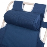 A fokozatmentes állítás és pozíciórögzítés mechanizmusa lehetővé teszi az ideális háttámla-szög beállítását – olvasástól a teljes nyújtózásig. Az állítható fejpárna támogatja a helyes relaxációs testtartást és tehermentesíti a nyaki gerincet.