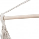 Stílusos, brazil típusú hintaszék, amely nyugalom szigetévé varázsolja az erkélyt, a teraszt vagy a nappalit. A tartós szövet erős pamutból poliészter keverékkel kellemes tapintású, légáteresztő és egyben strapabíró. A széles fa rúd nyitva tartja az ülőfelületet, növeli a stabilitást és megakadályozza a csavarodást.