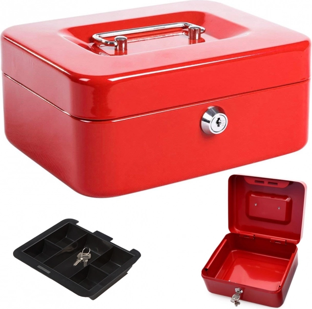 A piros fém pénzkazetta tökéletes választás, ha biztonságosan szeretné tárolni pénzét vagy egyéb értékeit, mint például ékszerek vagy dokumentumok. Kisméretének köszönhetően bárhol elrejthető és akár útra is magával viheti.