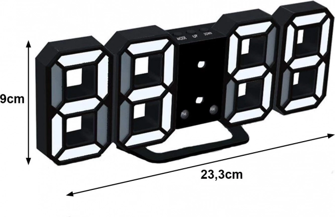 Stílusos elektronikus ébresztőóra nagy LED kijelzővel, amely nagyobb távolságból is kiváló olvashatóságot biztosít. A három fényerőszintnek köszönhetően könnyen a nappali vagy éjszakai használathoz igazíthatja a háttérvilágítást. Univerzális dizájnja bármely belső térhez illik, és lehetővé teszi a falra szerelést vagy az éjjeliszekrényre állítást.