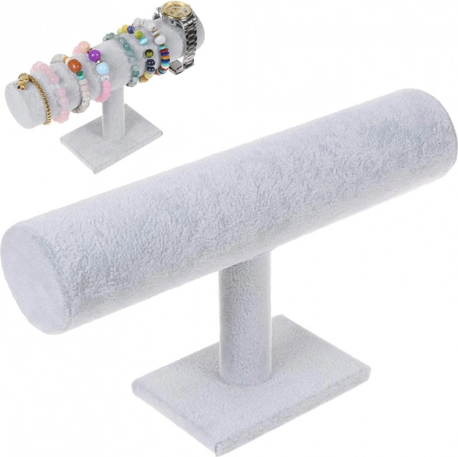Praktikus és stílusos állvány velúros textúrával, amely megóvja az ékszereket a karcolódástól, és elegáns megjelenést ad a belső térnek. A széles, hengeres forma megkönnyíti az órák és karkötők felhelyezését és levételét, míg a stabil talp kiváló stabilitást biztosít.