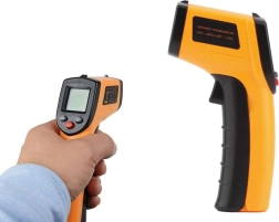 Az infravörös hőmérő lehetővé teszi a pontos hőmérsékletmérést nehezen hozzáférhető helyeken a lézeres mutató által, amely kijelöli a mérés pontos helyét. Nagyon sokoldalú, alkalmazható az autóiparban, gépgyártásban, építőiparban, hűtőiparban, vendéglátásban és élelmiszeriparban.