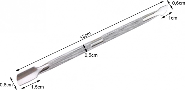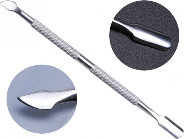 A körömágybőr és köröm ápoló eszköz magas minőségű rozsdamentes acélból készült, amely hosszú élettartamot és sterilizálhatóságot biztosít. Két éles vége garantálja a pontos bőrtávolítást és érdesség eltávolítást.