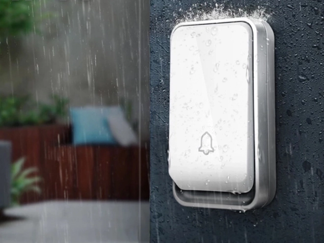 A csengő vevője és adója IP44 védettségnek köszönhetően víz ellen védett. Erős esőben is működőképes marad, így kültéri használatra is alkalmas. A nagy teljesítményű jel nyílt terepen akár 150 métert is elér.