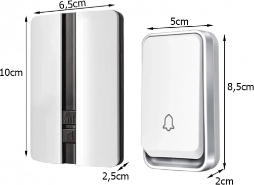 A vezeték nélküli kivitel és a kétgombos vezérlés megkönnyíti a csengő telepítését és használatát mindenki számára.