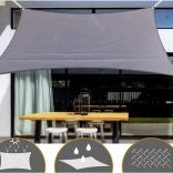 Praktikus, téglalap alakú árnyékoló ponyva 3 × 2 m méretben, amely megbízható árnyékot és védelmet nyújt eső és nap ellen a kertben, teraszon vagy kempingezéskor. Erős, 180 g-os poliészterből készült, megerősített szélekkel és sarkokkal, fém ringlikkel, a csomagban szerelőkötelekkel. Vízlepergető felületének, szélállóságának és UV-védelmének köszönhetően ideális kültéri használatra, könnyen szerelhető és gyorsan szárad. Vízállóság, UV-védelem, erős 180 g-os anyag, egyszerű szerelés és sokoldalú felhasználás.