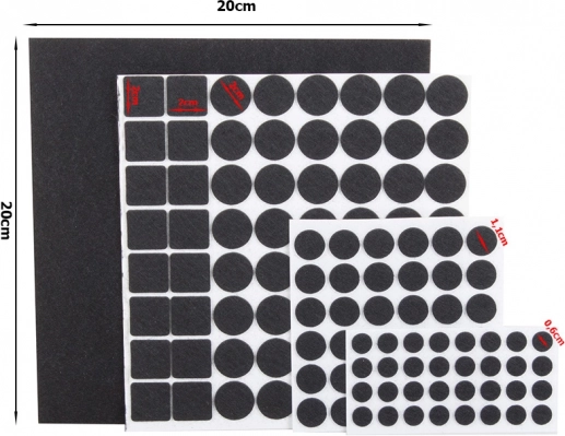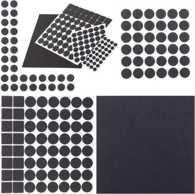 A csomag összesen 133 alátétet tartalmaz kör és négyzet formában, ami sokoldalú felhasználást biztosít különböző bútorokon.