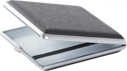 Élvezze a kényelmet és a stílust a Klasszikus cigarettatartóval, amely legfeljebb 20 cigaretta tárolására alkalmas. A belső gumipánt biztosítja, hogy a cigaretták biztonságban maradjanak, és a fém kapocs által minden szorosan zárva van.