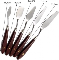 Az öt darabos festőkés készlet lefedi a palettán történő keverést, a vastagabb festékrétegek felhordását, valamint a domború effektek és pontos élek kialakítását.
