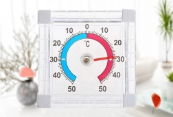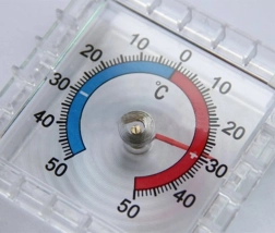 Egyszerűen használható kültéri és beltéri hőmérő átlátszó kivitelben. Pontosan mutatja a kinti hőmérsékletet, de belső mérésre is alkalmas.