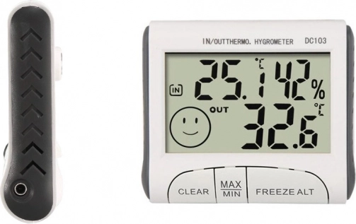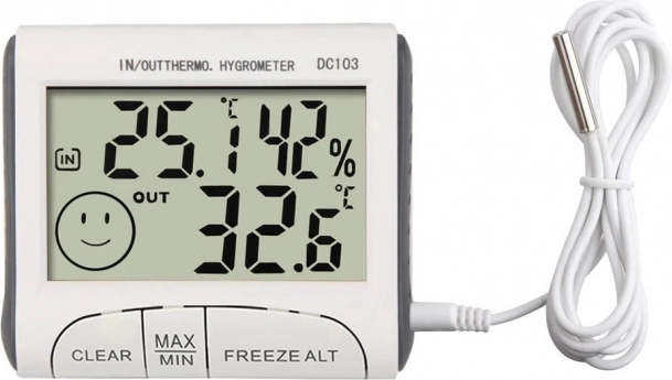 Tartsa ideális szinten a klímát otthon és a munkahelyen. Ez a digitális hő‑ és páramérő megjeleníti az aktuális benti hőmérsékletet és páratartalmat, valamint a tartós külső szonda segítségével a kinti hőmérsékletet is. Az áttekinthető LCD kijelzőt grafikus mosoly egészíti ki, amely azonnal jelzi a komfortot.