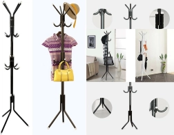 Stílusos és praktikus álló ruhafogas, amely ideális előszobába, gardróbba, irodába, butikokba vagy fodrászszalonokba. Az átgondoltan elhelyezett horgoknak köszönhetően, három szinten könnyedén felakaszthatja kabátokat, dzsekiket, táskákat és kiegészítőket. A porszórt acél hosszú élettartamot és ütésállóságot biztosít.