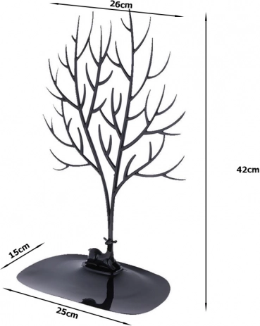 Elegáns, fa alakú ékszertartó, amely rendezetten egy helyen tartja kiegészítőidet. A sok ágacska révén könnyedén felakaszthatod a nyakláncokat, karkötőket és fülbevalókat, míg a széles talp gyűrűknek, óráknak vagy apró kozmetikumoknak ad helyet. A könnyű és könnyen tisztítható rendező egyszerre stílusos lakásdekor és praktikus segítőtárs otthonra vagy kirakatba.