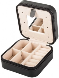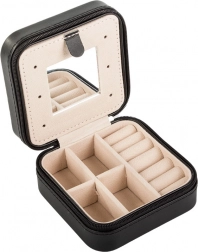 Ez a stílusos ékszerdoboz fekete külsővel és bézs bársony belsővel ideális mindennapi használatra és utazáshoz is. Az áttekinthető elrendezés lehetővé teszi gyűrűk, fülbevalók, láncok és apró kiegészítők tárolását, míg a beépített tükör megkönnyíti a gyors megjelenésigazítást.
