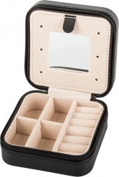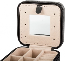 Beépített tükör és három akasztó láncokhoz vagy karkötőkhöz, amelyek megkönnyítik az ékszerek gyors felvételét gubancolódás nélkül.