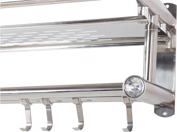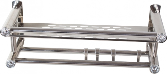 A könnyű alumínium nedvességállóságot és egyszerű karbantartást biztosít. A szerelés egyszerű és stabil, a szükséges szerelési tartozékok a csomag részei. A dekoratív, kristályos záróelemek visszafogott eleganciát kölcsönöznek a polcnak.