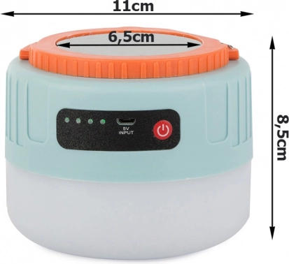 Strapabíró műanyag ház, kompakt méret és praktikus pánt karabinerrel a könnyű hordozhatóságért és felakasztásért sátorban vagy hátizsákon. Egyszerű egygombos vezérlés és univerzális töltés power bankról vagy hálózatról a kényelmes használathoz.