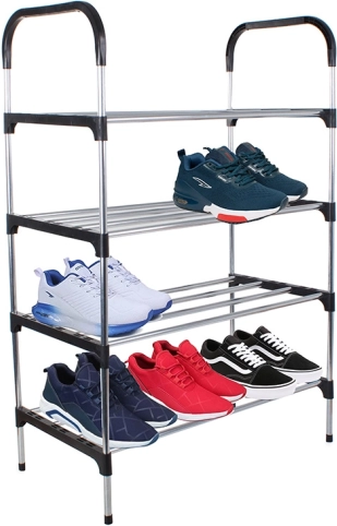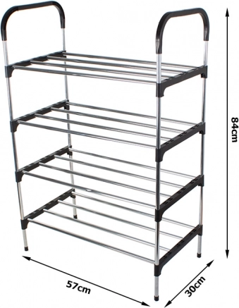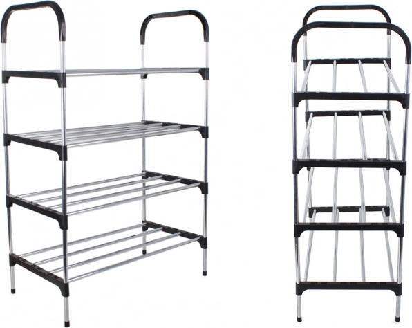 A többszintes cipőrendező polc hatékony szervezést tesz lehetővé otthon vagy az irodában. Könnyű súlyának és stabil szerkezetének köszönhetően könnyen hordozható és összeszerelhető. Az állvány négy szintet tartalmaz, amelyeket a helytől és igényeidtől függően állíthatsz be.