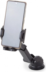 Univerzális autós tartó szélvédőre szereléshez, erős vákuumos tapadókoronggal, állítható karokkal és 360°-ban forgatható fejjel. Stabil rögzítést biztosít, egygombos könnyű kezelést és gyors telepítést a legtöbb okostelefonhoz és GPS készülékhez.