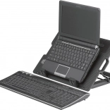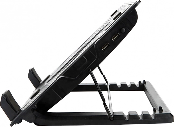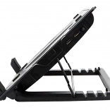 Erőteljes hűtőpad egy nagy, halk ventilátorral, amely javítja a légáramlást és megakadályozza a túlmelegedést a laptopban. A négy fokozatú dőlésszög-állítás (kb. 20–40°) támogatja a egészséges testtartást és a kényelmes gépelést. A masszív kialakítás csúszásgátló elemekkel biztonságosan a helyén tartja az eszközt.