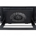 Egy nagy, 12 cm-es ventilátor biztosít stabil légáramlást és halk működést. A kék LED megvilágítás jelzi az aktív hűtést és modern megjelenést kölcsönöz a padnak.