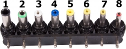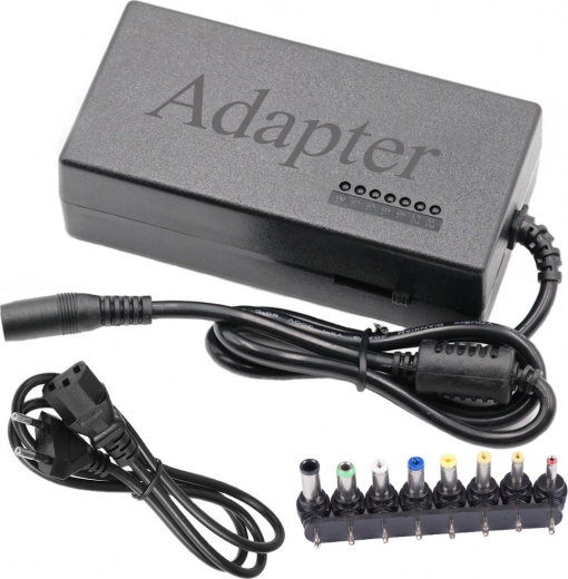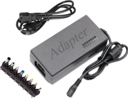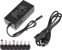 A csomag része 8 cserélhető csatlakozó, amelyek lefedik a népszerű márkákat és laptopmodelleket (pl. ACER, ASUS, DELL, HP, LENOVO, SONY VAIO, TOSHIBA stb.). A LED-ek jelzik az aktuális üzemállapotot, a feszültségválasztó pedig gyors beállítást tesz lehetővé.