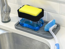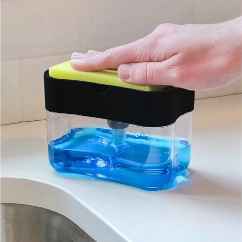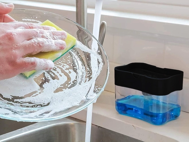 Tartsa rendben a konyhát és a fürdőt ezzel az okos adagolóval, amely a folyékony szappan- vagy mosogatószer-tartályt praktikus szivacstartóval ötvözi. A szivacs egyetlen lenyomásával pontosan annyi szert kap, amennyire szüksége van – pazarlás és a mosogató körüli cseppek nélkül.