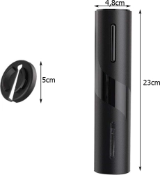 Stílusos elektromos bornyitó beépített, újratölthető akkumulátorral, amely időt és fáradságot takarít meg – az üveget 5–7 másodperc alatt nyitja. Egyszerű egygombos vezérlés, csendes működés, ergonomikus, csúszásmentes markolat és LED megvilágítás. A csomag tartalmaz fóliavágót és USB kábelt a kényelmes töltéshez.